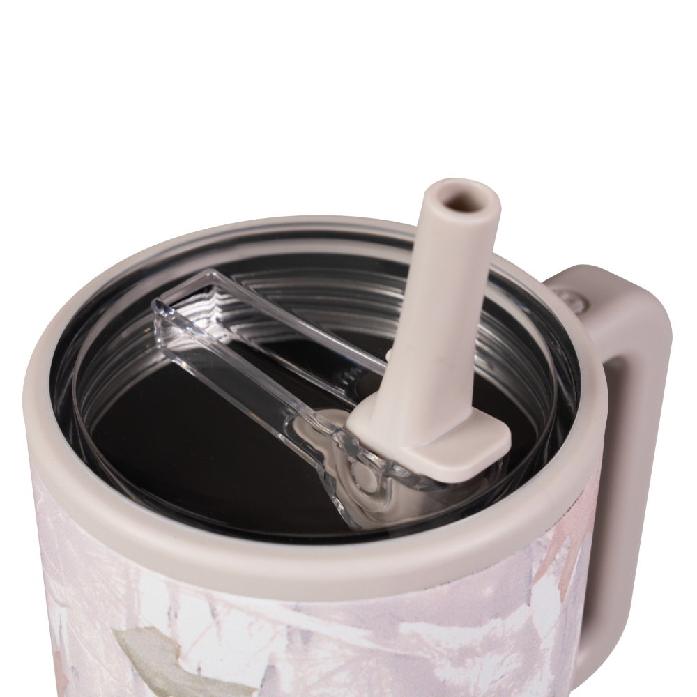 The 20oz capacity is perfectly portable – small enough for backpacks, lunch bags, and cup holders, yet dependable enough for everyday hydration. Built from durable stainless steel with triple-wall insulation, the Camo tumbler keeps drinks cold for hours, and its dishwasher-safe construction makes cleaning simple.