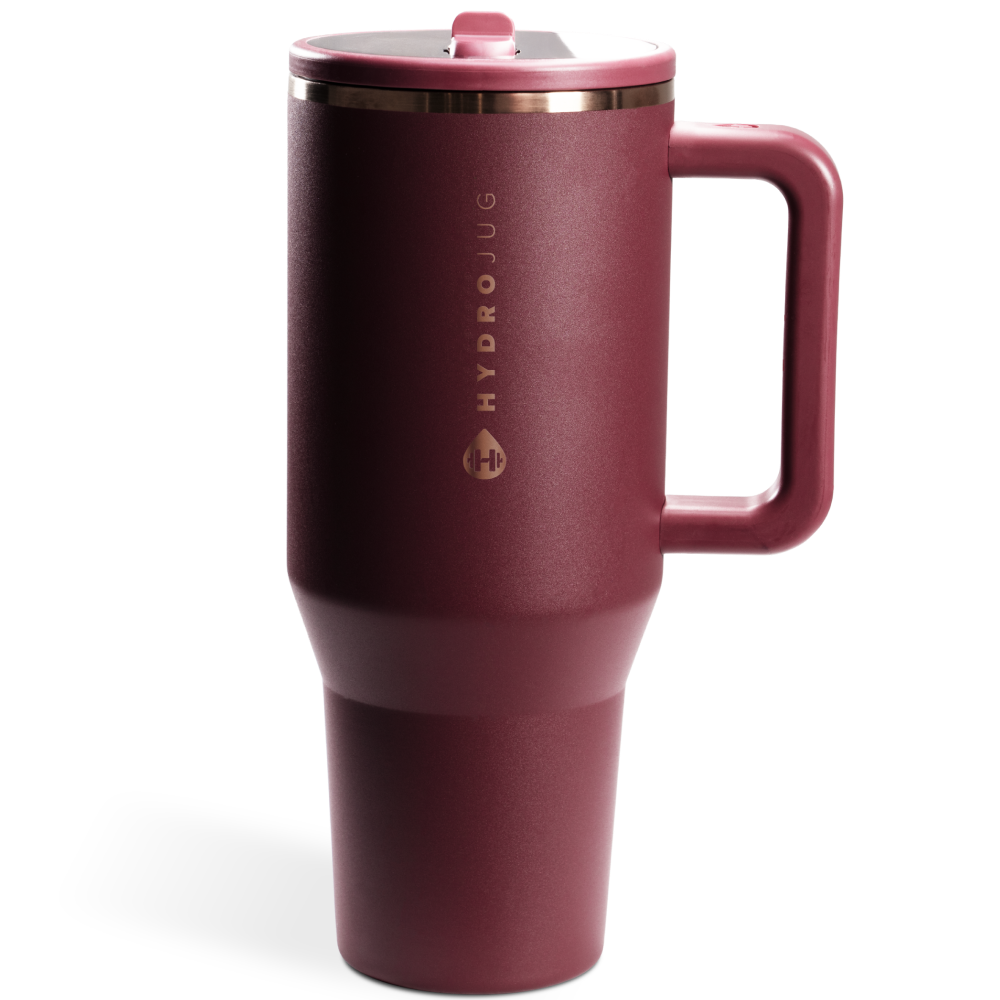 The HydroJug Traveler 40oz in Merlot delivers hydration with a refined finish. Its deep burgundy body and bronze band add a modern touch for workouts, commutes, or weekend adventures.