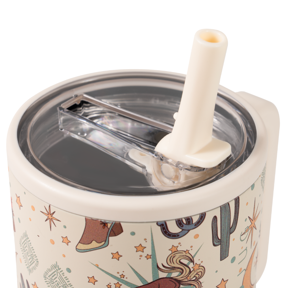 The 20oz capacity is the most portable option in the collection – small enough for backpacks, lunch bags, and cup holders, yet dependable enough for everyday hydration. Built from durable stainless steel with triple-wall insulation, the Rodeo tumbler keeps drinks cold for hours, and its dishwasher-safe construction makes cleanup easy.