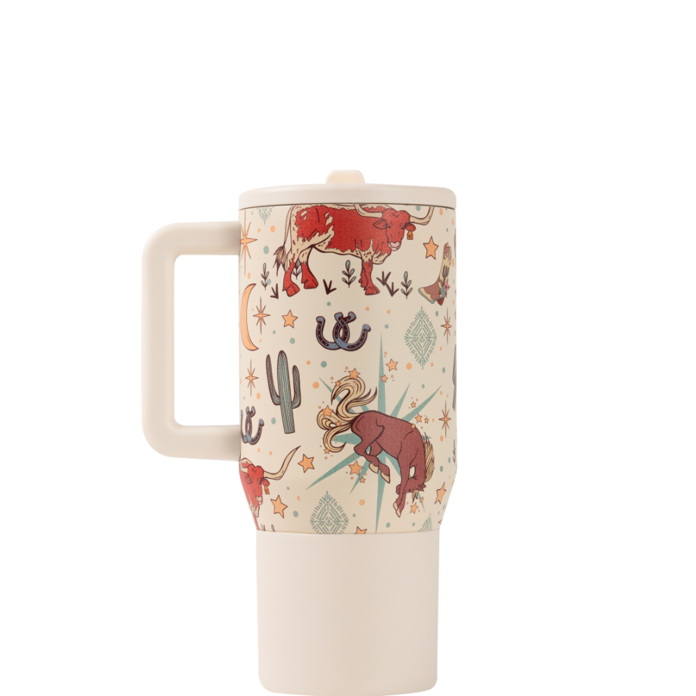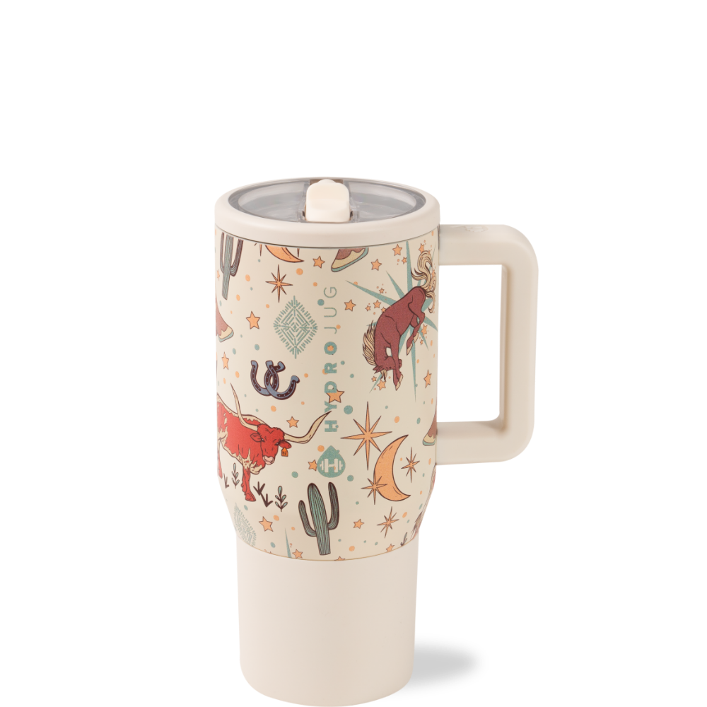 Stay hydrated with the HydroJug Traveler 20oz in Rodeo. With its cream base accented by desert-inspired graphics, this compact water bottle adds a western touch while supporting steady hydration through school days, commutes, or weekend activities.