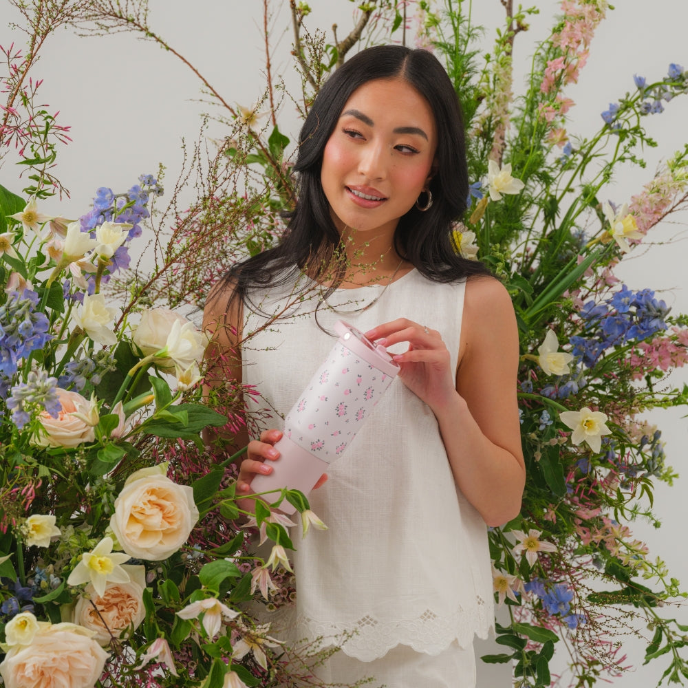 The 20oz size is the most compact in the collection – lightweight and easy to carry, perfectly sized for backpacks, gym bags, or cup holders. Made from 18/8 stainless steel with triple-wall insulation, the Wildrose tumbler keeps drinks cold for hours, while its dishwasher-safe body makes cleanup simple.